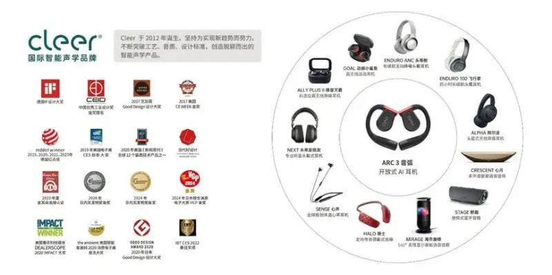 As a brand focused on high-end audio products, Cleer has been committed to the research and innovation of audio technology since its establishment in 2012, in order to meet users' demand for high-quality audio experience. To ensure the high quality and continuous technological leadership of its products, Cleer relies on its parent company Grandsun Electronics' 27 years of research and development experience, as well as its solid technical accumulation of intelligent earphone patent applications ranking 7th in the world. It has become one of the few acoustic brands in China with independent acoustic laboratories, and with the core driving force of technological innovation, has independently developed over 1300 patented technologies. These patents cover multiple fields, from audio processing to wireless communication, from ergonomics to materials science. By applying these patented technologies, Cleer is able to continuously launch products with innovative features, thereby maintaining a leading position in the market.