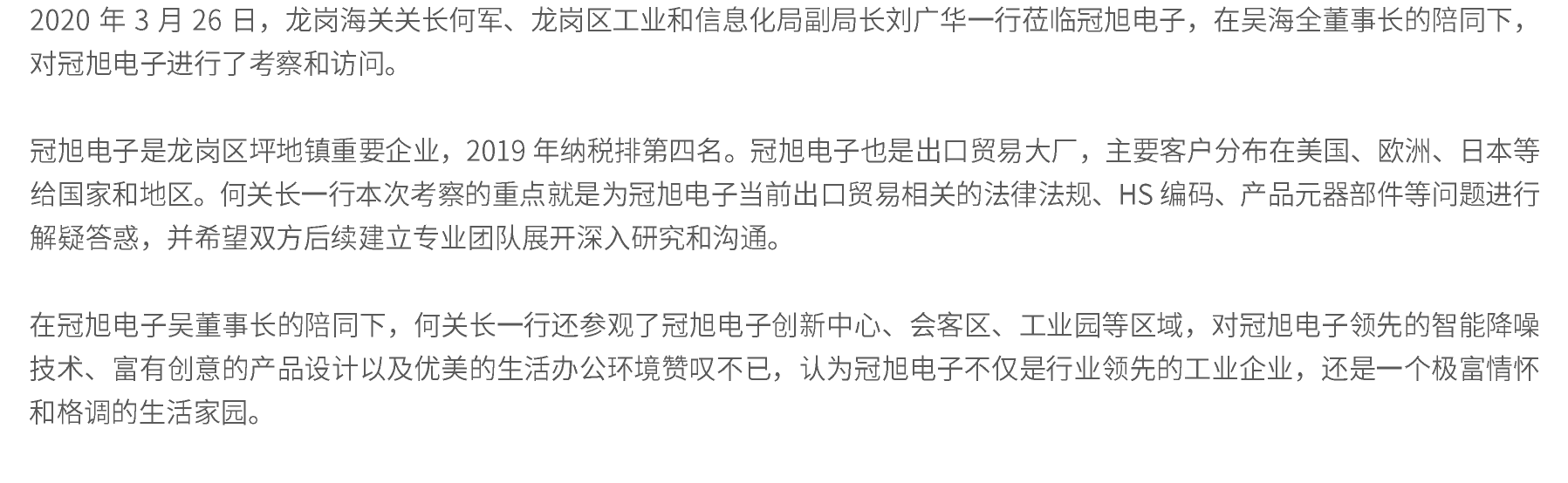 龍崗海關(guān)何關(guān)長(cháng)蒞臨冠旭電子