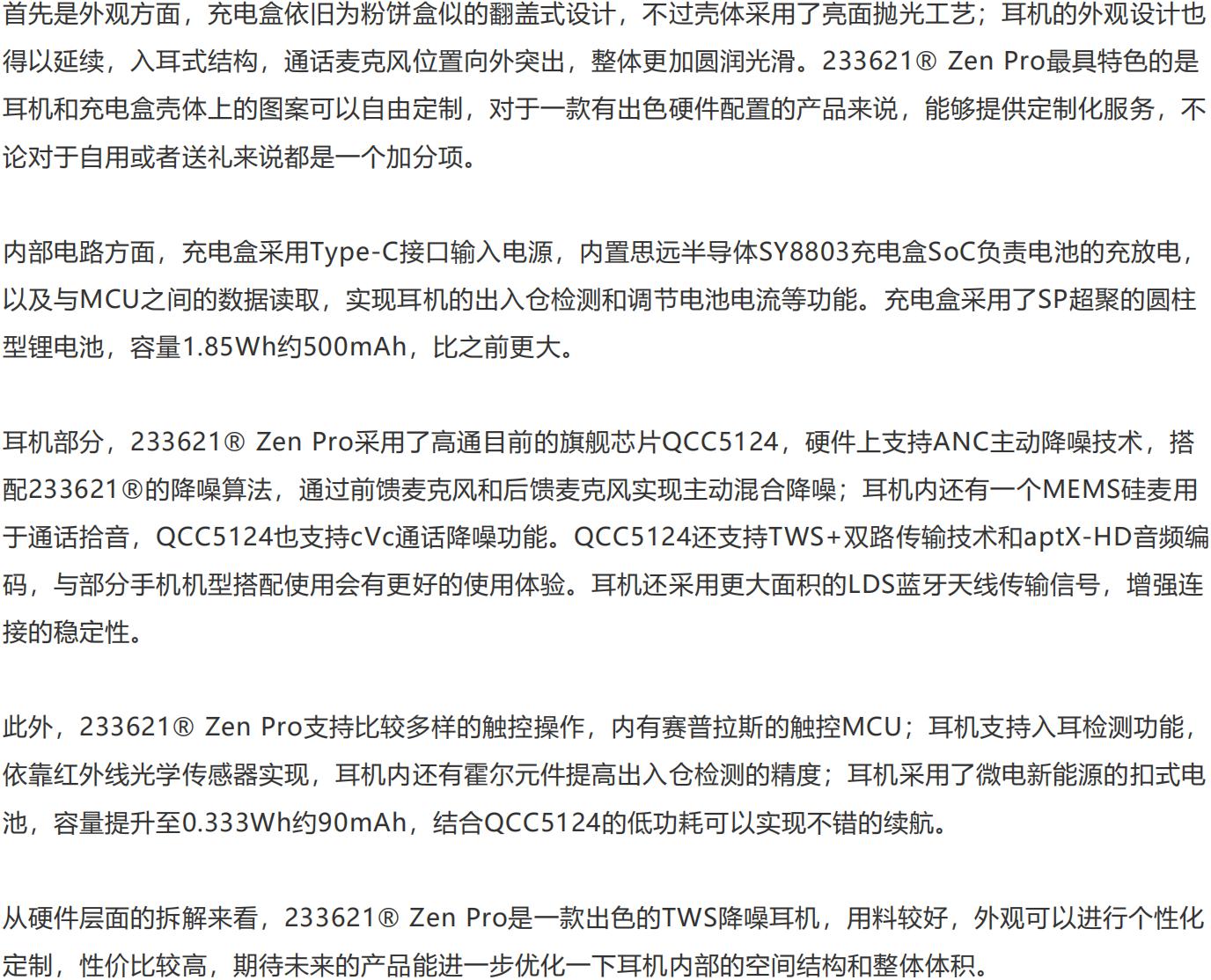 【轉載】我愛(ài)音頻網(wǎng)拆解報告:233621? Zen Pro 真無(wú)線(xiàn)降噪耳機