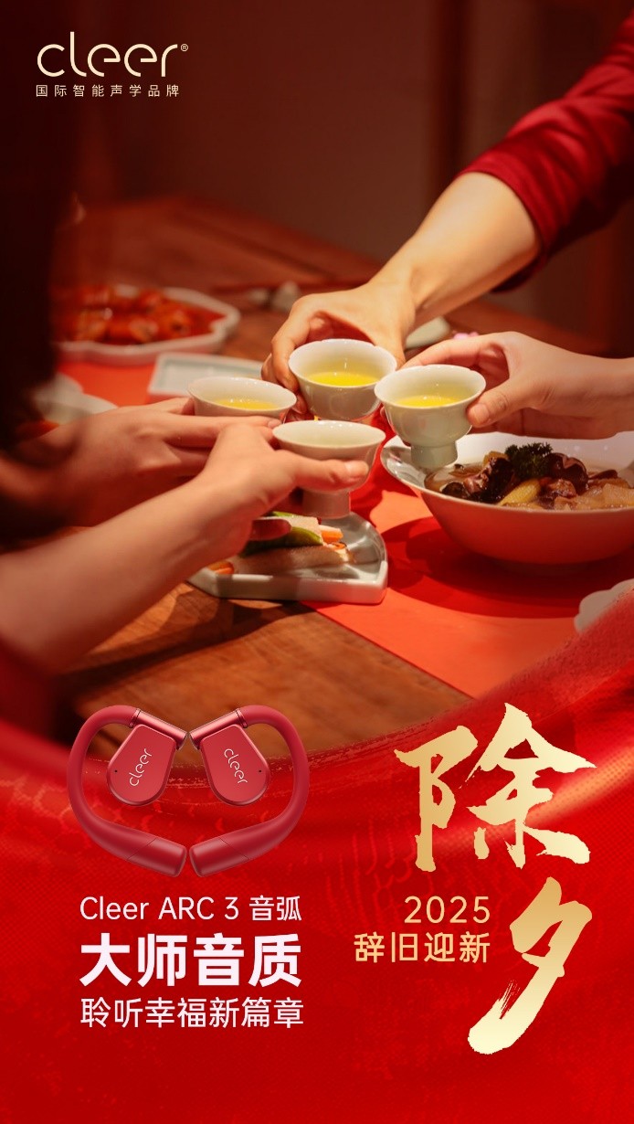 除夕夜是新年的“重頭戲”,一家人圍坐在一起,一邊看春晚一邊享受美味,年味就濃縮在一頓豐盛的年夜飯里。在辭舊歲的美好時(shí)刻,不妨也同樣大膽迎新“聲”,為自己、為親友的新年增添一份儀式感。而這款擁有著(zhù)“大師音質(zhì)”的Cleer ARC 3 音弧,足以成為新年迎新“聲”的最佳選擇。