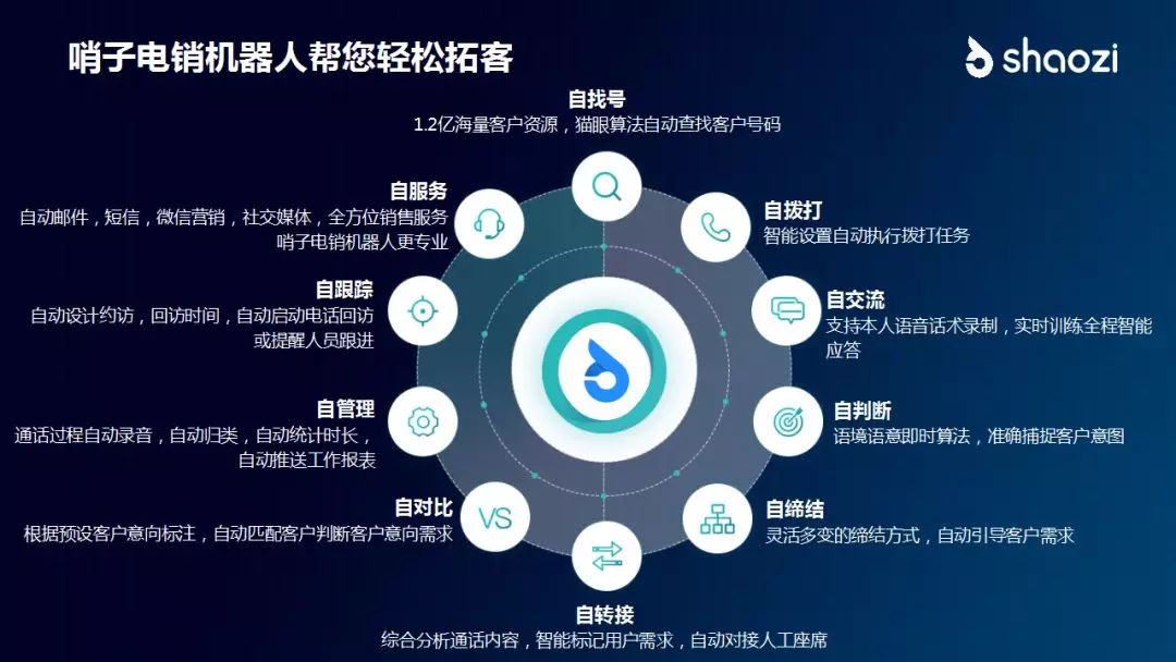 這一領(lǐng)域,哨子已率先入局,其基于A(yíng)I智能語(yǔ)音技術(shù)所研發(fā)并推向市場(chǎng)的“哨子智能電銷(xiāo)機器人”已得到了廣泛應用,覆蓋了包括網(wǎng)絡(luò )電商、金融、房地產(chǎn)、廣告、汽車(chē)、保險、教育等十幾個(gè)行業(yè)領(lǐng)域,取得了良好的市場(chǎng)反響??梢哉f(shuō),哨子利用自身在大數據企業(yè)管理的優(yōu)勢,有力地推動(dòng)了人工智能與傳統電銷(xiāo)的深度融合發(fā)展。